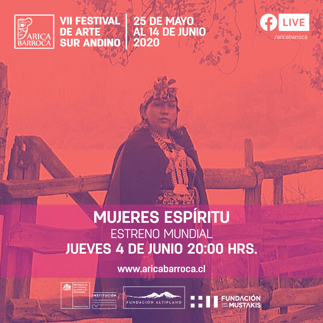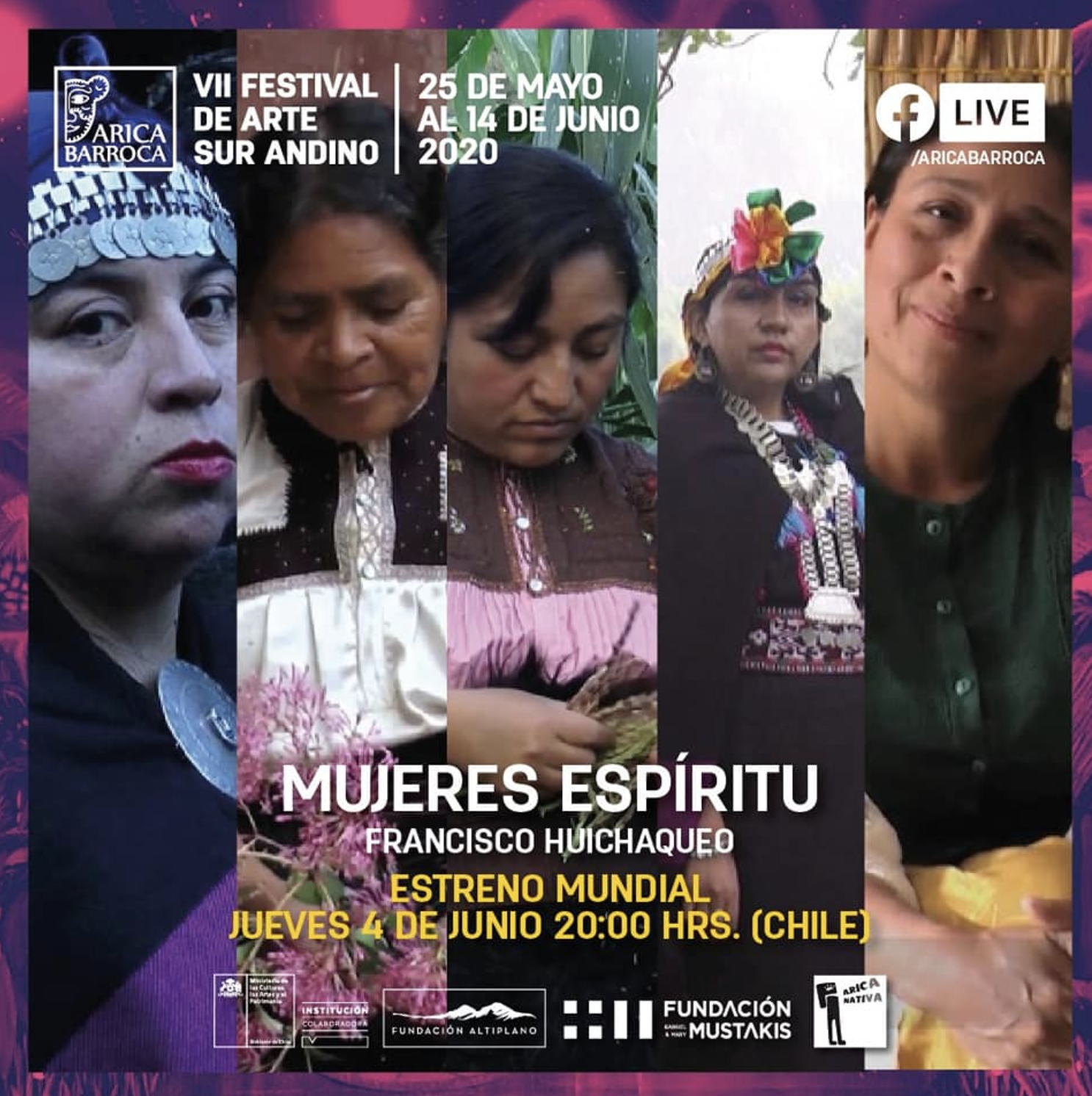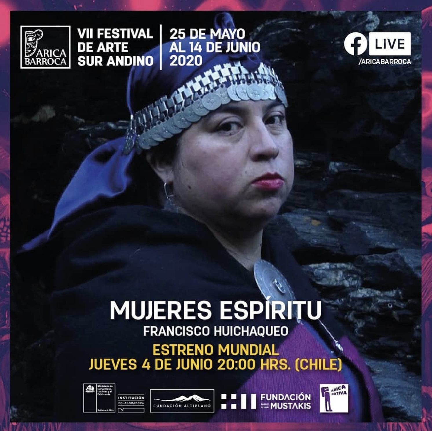 Este jueves 4 de junio se estrenará a las 20 horas la película “Mujeres espíritu” de Francisco Huichaqueo. El lanzamiento es parte del VII Festival de Arte Sur Andino Arica Barroca que se desarrolla por plataformas digitales con una nutrida programación, hasta el 14 de junio.