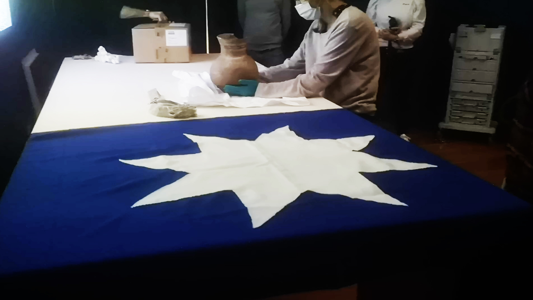 Los objetos presentes en la muestra, fueron gestionados gracias a las acciones de la plana mayor de la Bienal y sus curadoras, complementadas con video llamadas de parte de Huichaqueo hacia la dirección del Museo Etnografico de Berlín, logrando un préstamo difícil de gestionar desde su dirección. Entre ellas Metawes, Kultrunes y pifilkas de uso espiritual, su data es de alrededor de 300 a 400 años.