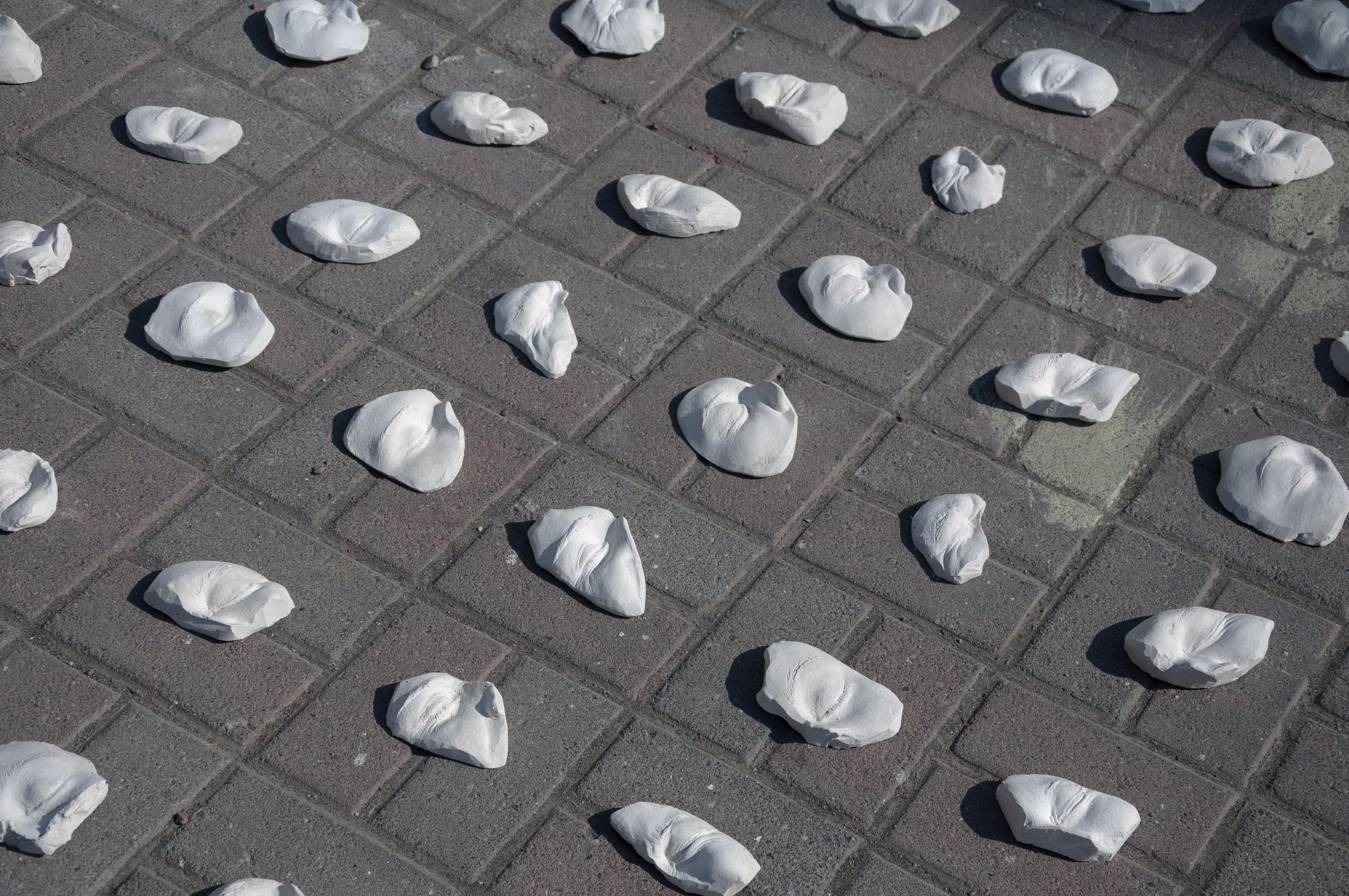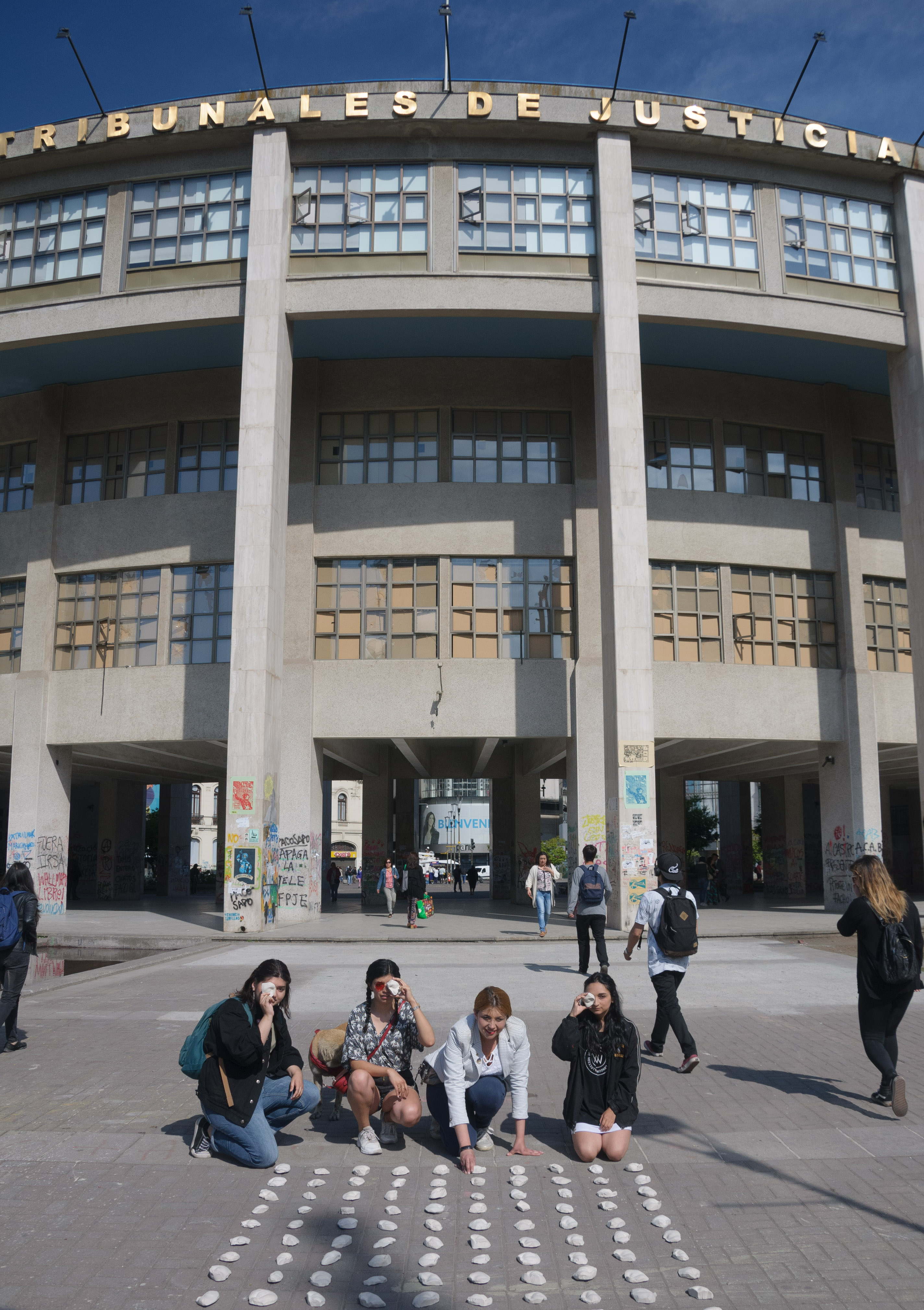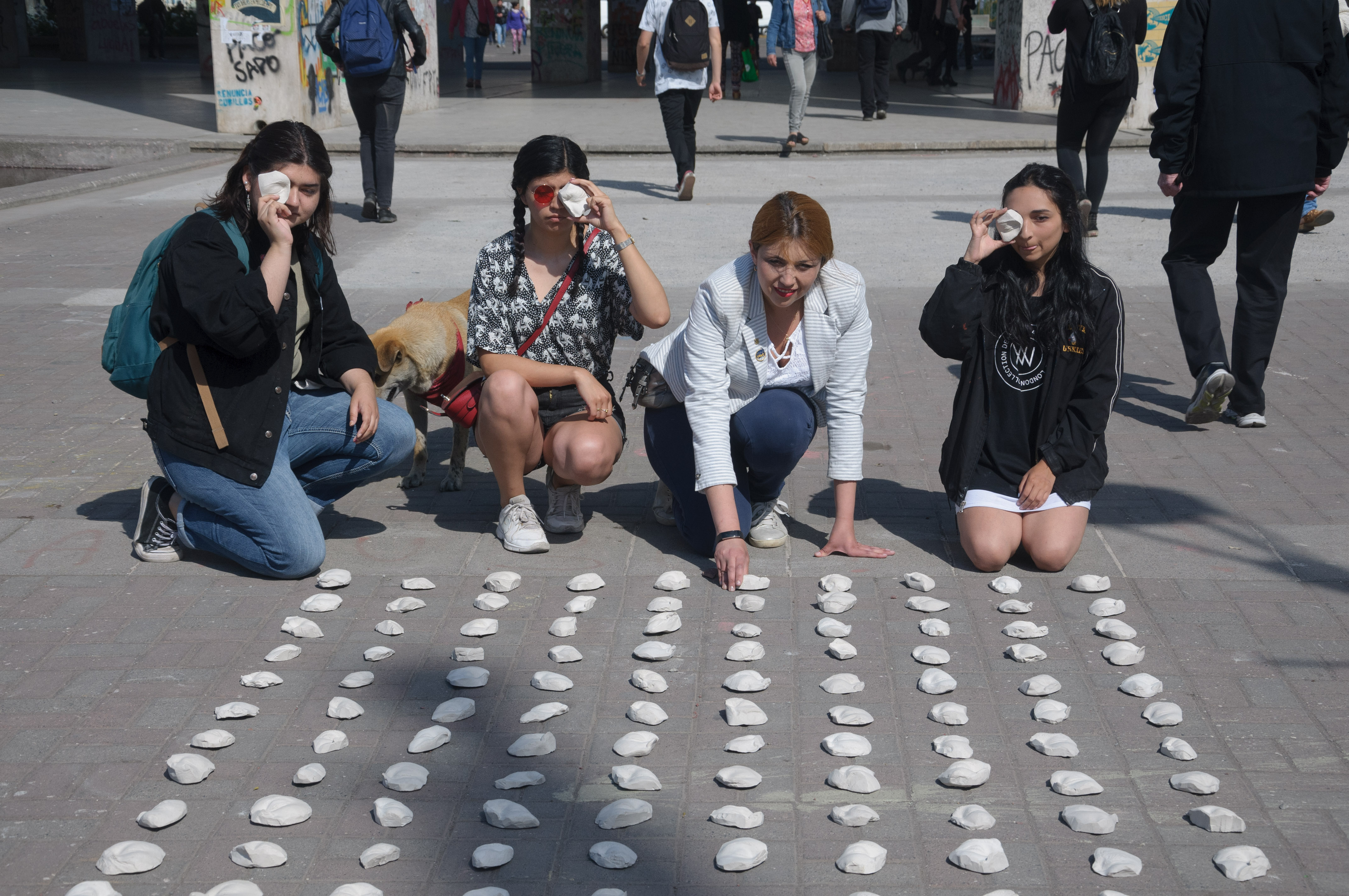 La intervención es fruto de un trabajo colectivo y es una de varias iniciativas que el Departamento de Artes Plásticas ha impulsando y que están vinculadas a la actual situación país. Durante 1 semana, alumnos, profesores, secretaria, auxiliares etc. colaboraron como modelos para extraer moldes de alginato, los cuales fueron vaciados en yeso, obteniéndose finalmente mas de 200 reproducciones solidas de ojos. El número de piezas obtenidas hace referencia al numero actual de personas afectadas por traumas oculares en lo que va de conflicto (cifra que maneja el instituto nacional de derechos humanos), informó la docente del Departamento de Artes Plásticas, Valeria Murgas.