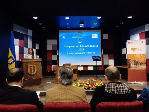 Una emotiva y significativa Ceremonia de Inicio de Año Académico de la Carrera de Licenciatura en Historia, se llevó a cabo este miércoles 24 de abril, a la que asistieron el decano de la Facultad de Humanidades y Arte, doctor Alejandro Bancalari Molina; el jefe de carrera de Licenciatura en Historia, doctor Mauricio Rojas; docentes, estudiantes, y como invitado principal el doctor y profesor emérito de la Pontificia Universidad Católica de Valparaíso, Raúl Buono-Core Varas, quien dictó la conferencia inaugural «La Universitas: lo clásico, lo moderno, lo actual».