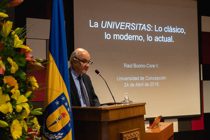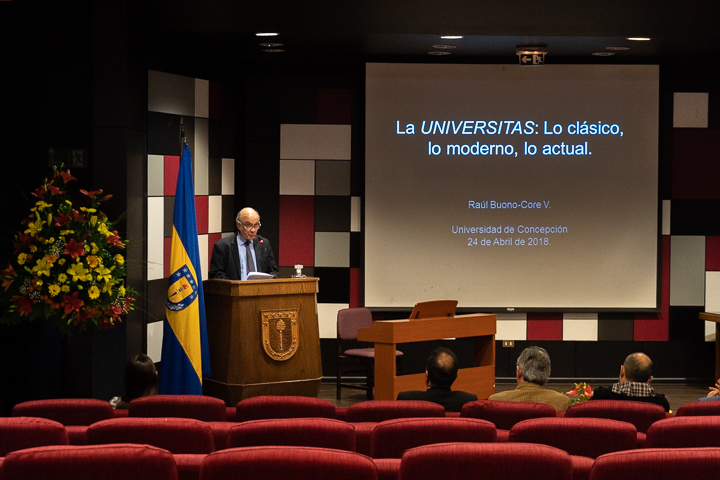 Respecto a la conferencia con que se dio inicio al año académico, el doctor Raúl Buono-Core Varas explicó que se trató de una » especie de sinopsis desde el origen de la universidad como concepto hasta la actualidad. Pasando por el período clásico. moderno y el actual. Pensando en los 100 años que cumple la UdeC, que es un buen argumento para realizarlo. Lo pensé para los estudiantes. A veces el sentido de universidad se pierde, no se entiende bien, por eso es bueno recordar ciertas cosas para que (los alumnos) se reorienten en algo que no es una idea tan simple porque una universidad no se construye en un año, sino que en 100, esa es la clave».