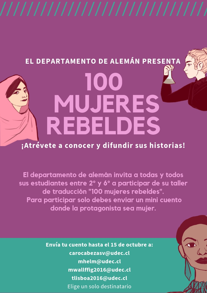 El objetivo es traducir con un grupo de estudiantes algunos cuentos de rasgos biográficos del libro «Cuentos de buenas noches para niñas rebeldes» de E. Favilli y F. Cavallo desde el alemán al español. Algunas sesiones del taller se realizarán en la Facultad y otras en la Biblioteca Municipal, ya que uno de sus objetivos es dar a conocer la Biblioteca y sus actividades y establecer así un lazo de trabajo más permanente con esa institución.