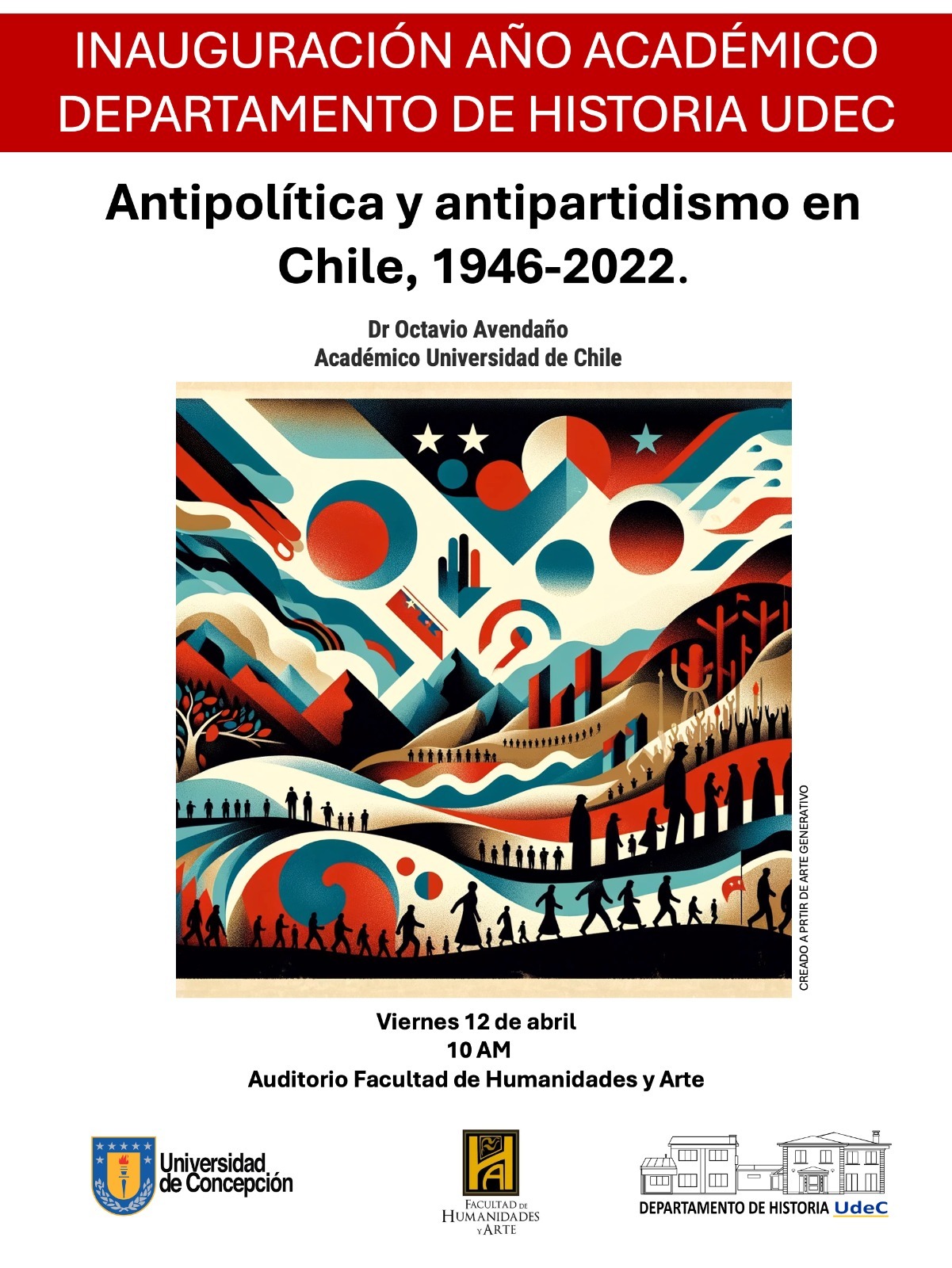 Este viernes 12 de abril, se realizará la inauguración del año académico 2024 por parte del Departamento de Historia, con la conferencia titulada «Antipolítica y antipartidismo», a cargo del Dr. Octavio Avendaño, egresado de la UdeC y académico de la Universidad de Chile.