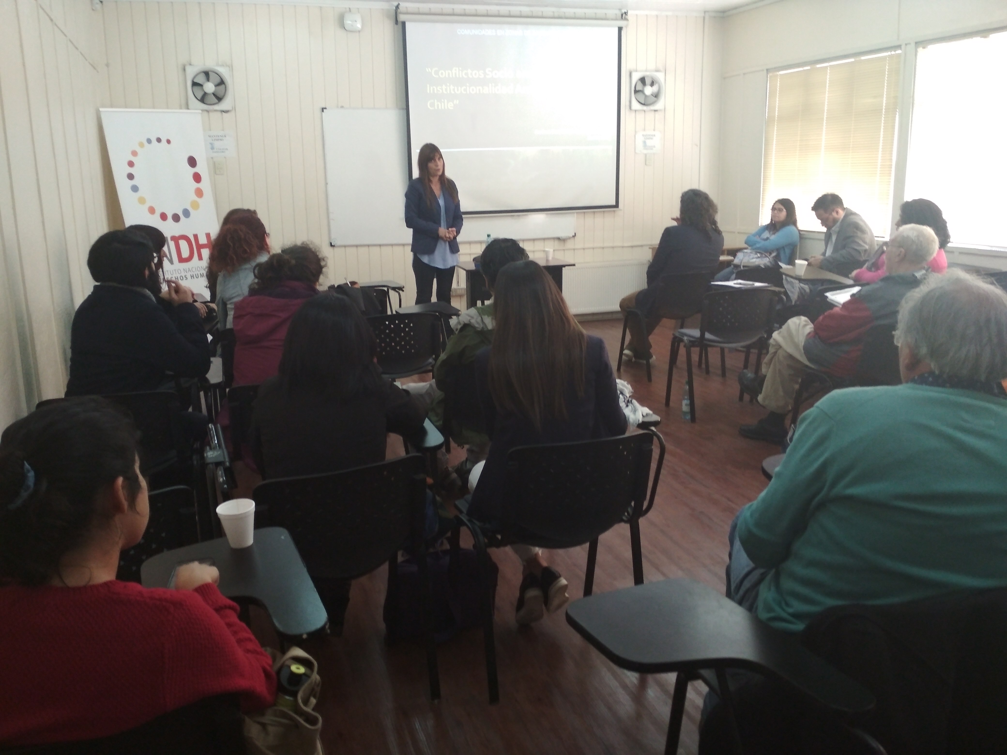 Durante el seminario expusieron Verónica Delgado, profesora asociada de la Facultad de Ciencias Jurídicas y doctora en Derecho Ambiental; Harun Oda, profesional encargado en educación, promoción y estudios de la sede Biobío del Instituto Nacional de Derechos Humanos; Andrea Santelices, socióloga de la UdeC; Constanza Mora y Gabriela Cofré, profesoras de Historia y Geografía de la UdeC, y Adrián Oporto, profesor de Historia y Geografía e integrante del Centro Cultural Coronel Sur.