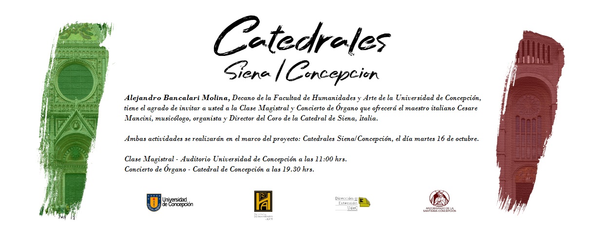 En el marco del próximo aniversario de los 100 años de la Universidad de Concepción, y respondiendo al compromiso de la institución con la comunidad regional por medio de la difusión de las artes y la cultura, el Departamento de Música de la Facultad de Humanidades y Arte, organizó el evento musical y académico, denominado «Catedrales, Siena/Concepción”.