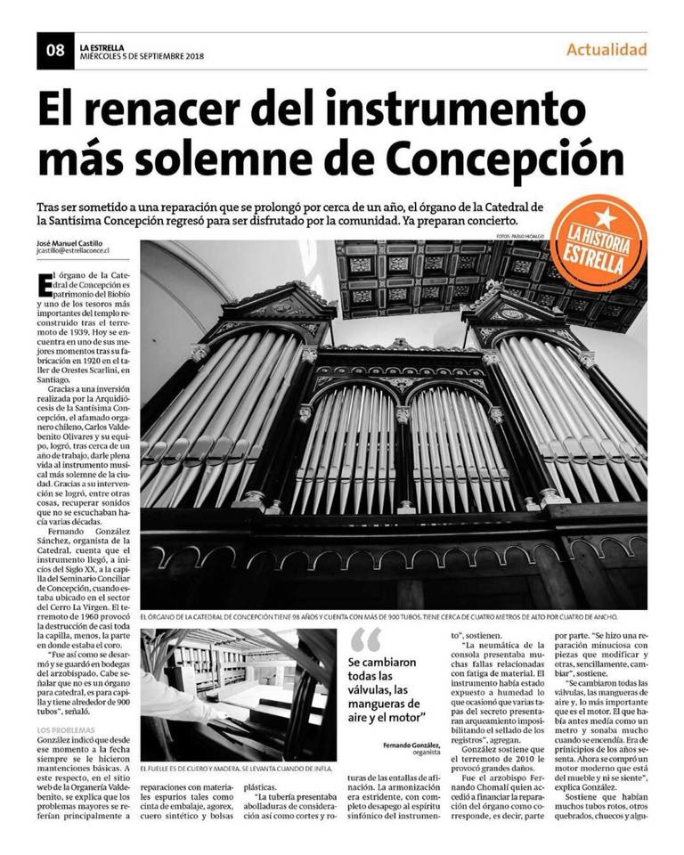 El académico hizo hincapié que esta propuesta busca resaltar y relevar el patrimonio instrumental catedralicio presente en Chile, en este caso el órgano de la Catedral de Concepción, instrumento construido en el año 1930 por el luthier Oreste Carlini el cual ha sido recientemente rescatado y reparado luego de los daños sufridos producto del último terremoto, ocasión que dará lugar a su reinauguración.