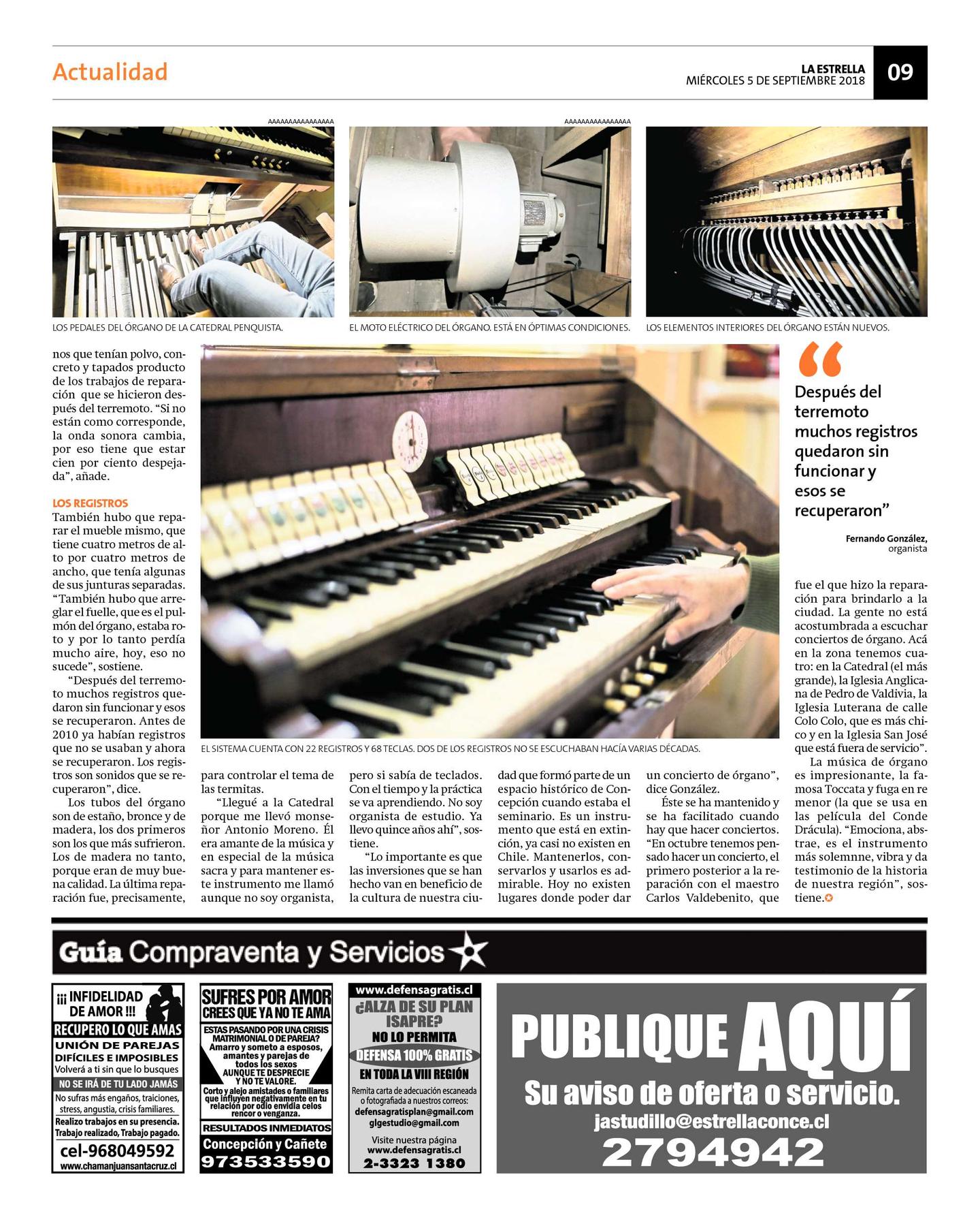 Tanto la clase magistral como el concierto de órgano son gratuitos y dirigidos a toda la comunidad universitaria y de Concepción.