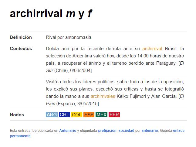 En el Antenario se podrán encontrar aquellos vocablos presentes en el uso actual pero todavía ausentes en los diccionarios de referencia. Cada neologismo va acompañado de definición, contextos de uso y otras informaciones lingüísticas y pragmáticas.