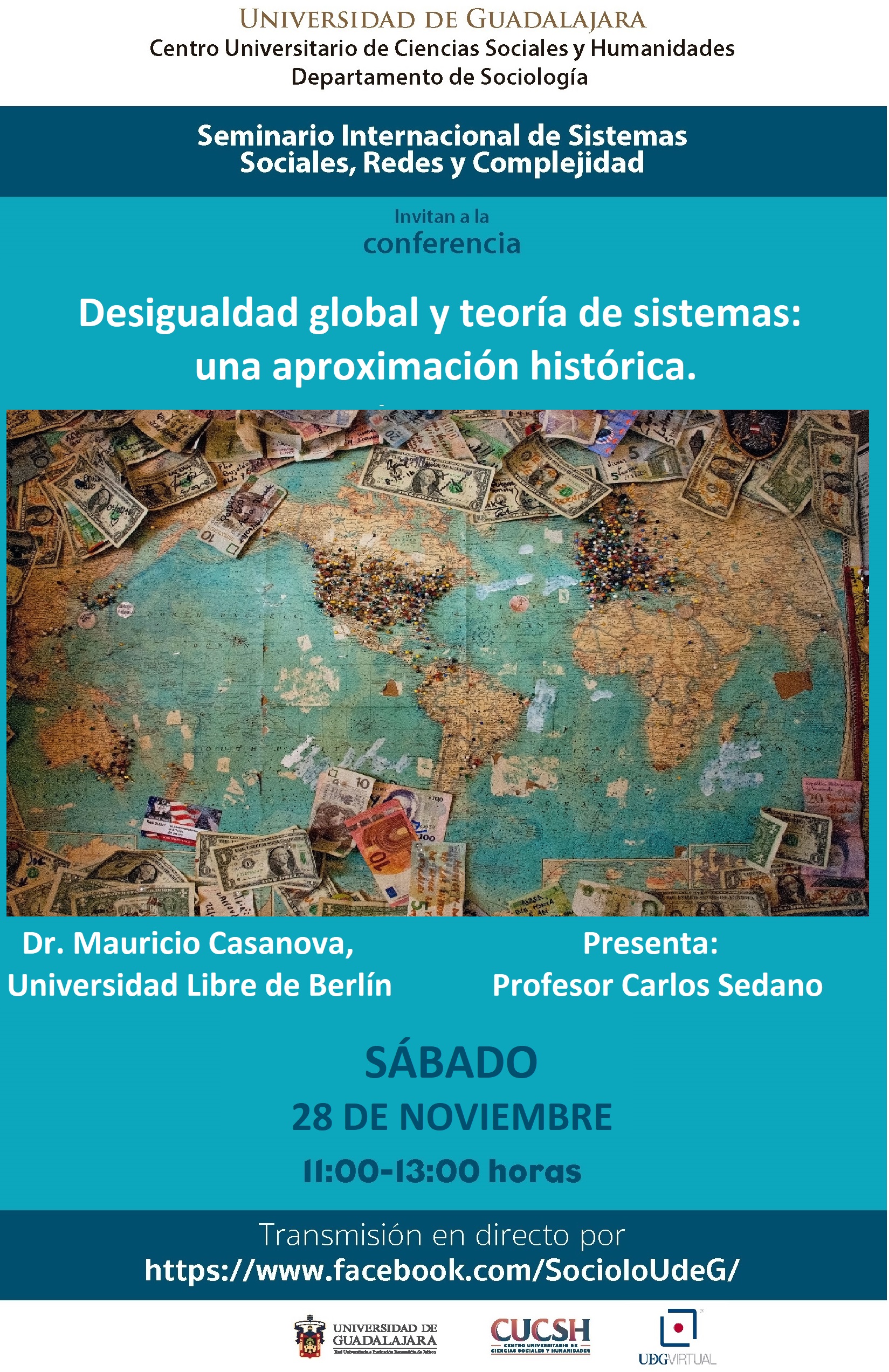 El Departamento de Historia de la Facultad de Humanidades y Arte, de la UdeC, invita a participar de la conferencia «Desigualdad global y teoría de los sistemas: una aproximación histórica», la cual es organizada por el Centro Universitario de Ciencias Sociales y Humanidades, de la Universidad de Guadalajara, México.