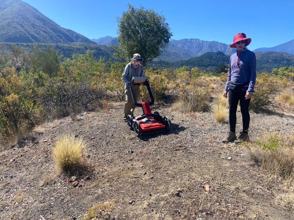 La primera etapa de este proyecto, implica la realización de dos actividades. La primera de ellas, corresponde a la realización de prospecciones llevadas a cabo con la tecnología de GPR (Ground Penetration Radar), la cual permite conocer la presencia de estructuras que se pueden encontrar bajo la superficie y que no pueden ser detectadas a simple vista. Esto, permitirá conocer la distribución de rasgos arquitectónicos, como también su profundidad.