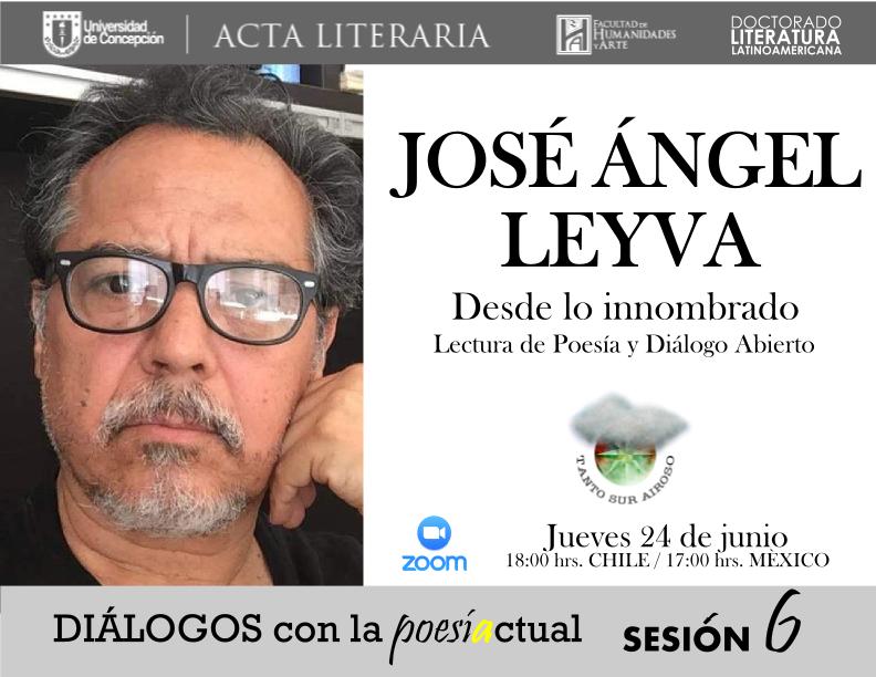 Diálogos con la poesía actual contará con la presencia, en su sexta sesión, del poeta, narrador, periodista, editor y promotor cultural mexicano José Ángel Leyva. El destacado escritor ofrecerá una lectura de sus poemas y dialogará con los asistentes.