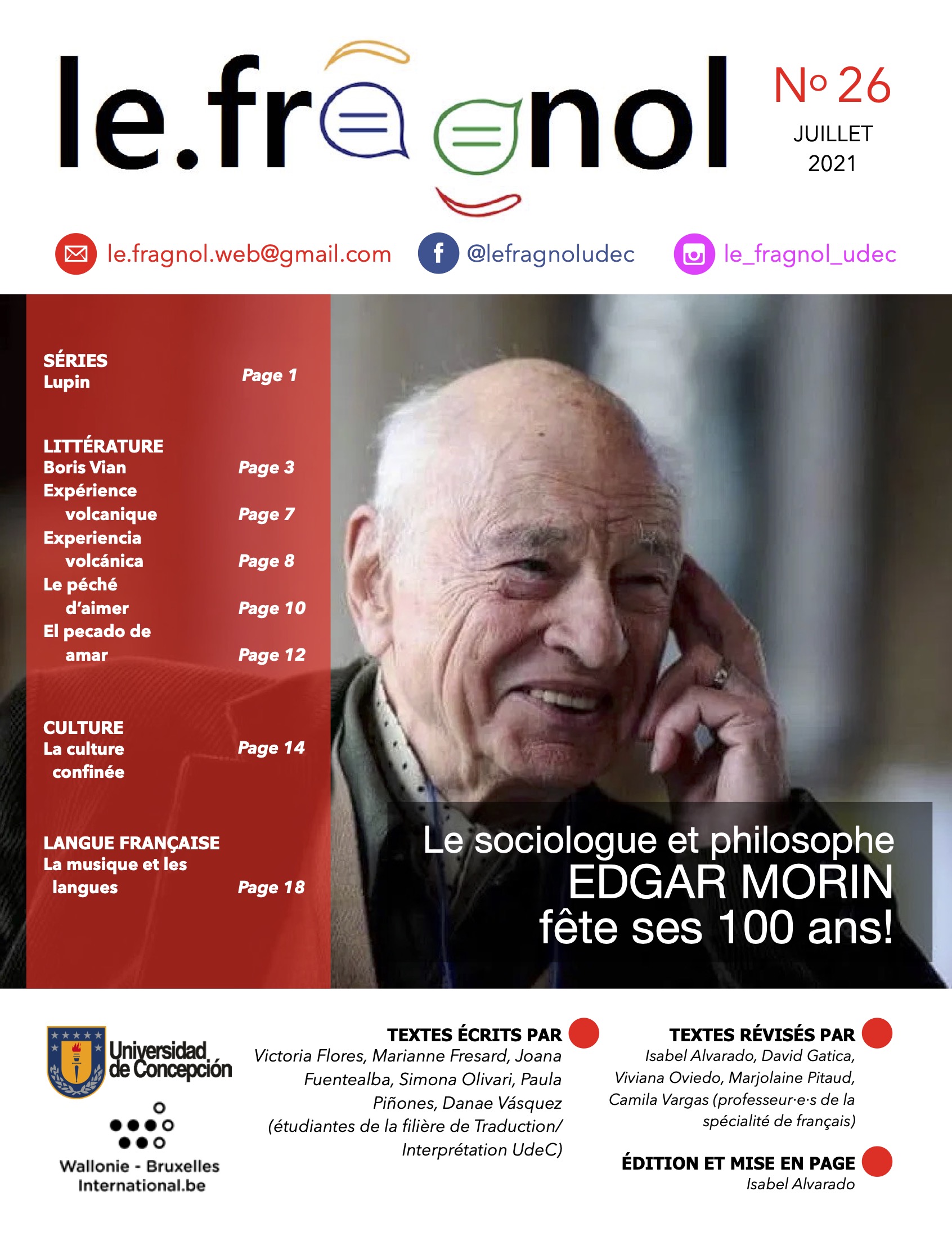 Le Fragnol es una revista escrita por estudiantes de francés de la carrera de Traducción/Interpretación en Idiomas Extranjeros de nuestra Facultad. Un equipo de profesores de la especialidad de francés del Departamento de Idiomas extranjeroslas/los acompaña en el proceso de revisión y corrección de sus artículos. El equipo de Le Fragnol quisiera destacar y valorar el trabajo y el compromiso de los estudiantes – y para este número de LAS estudiantes – quienes, con sus pasiones e ideas, le dan vida y color a la revista. Sin ellos este proyecto no podría existir.