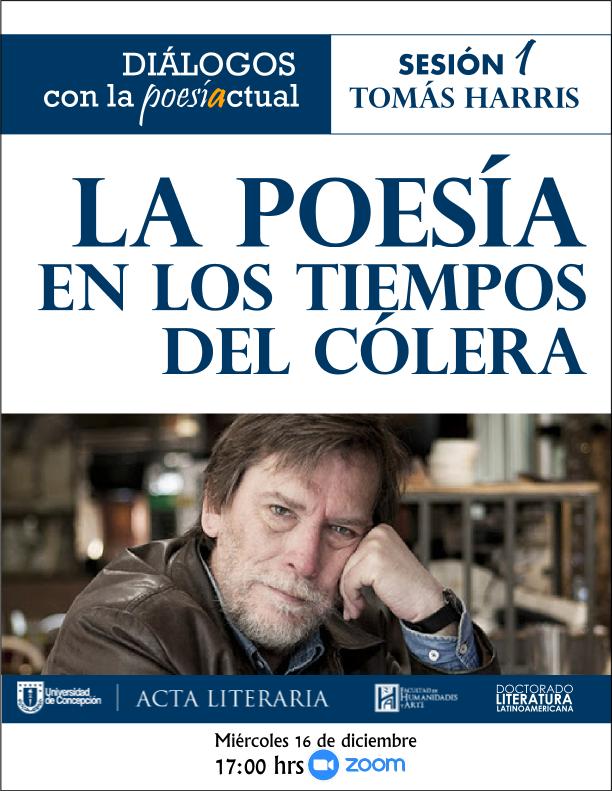 Este miércoles 16 de diciembre, a las 17:00 horas, la Facultad de Humanidades y Arte de la Universidad de Concepción inicia el ciclo “Diálogos con la poesía actual”, que contará en su primera sesión con la presencia del prestigioso poeta chileno Thomas Harris. La actividad organizada por el Doctorado en Literatura Latinoamericana y la revista Acta Literaria, será transmitida a través de la plataforma zoom y en sus distintas ediciones convocará a destacadas y destacados poetas de Latinoamérica.