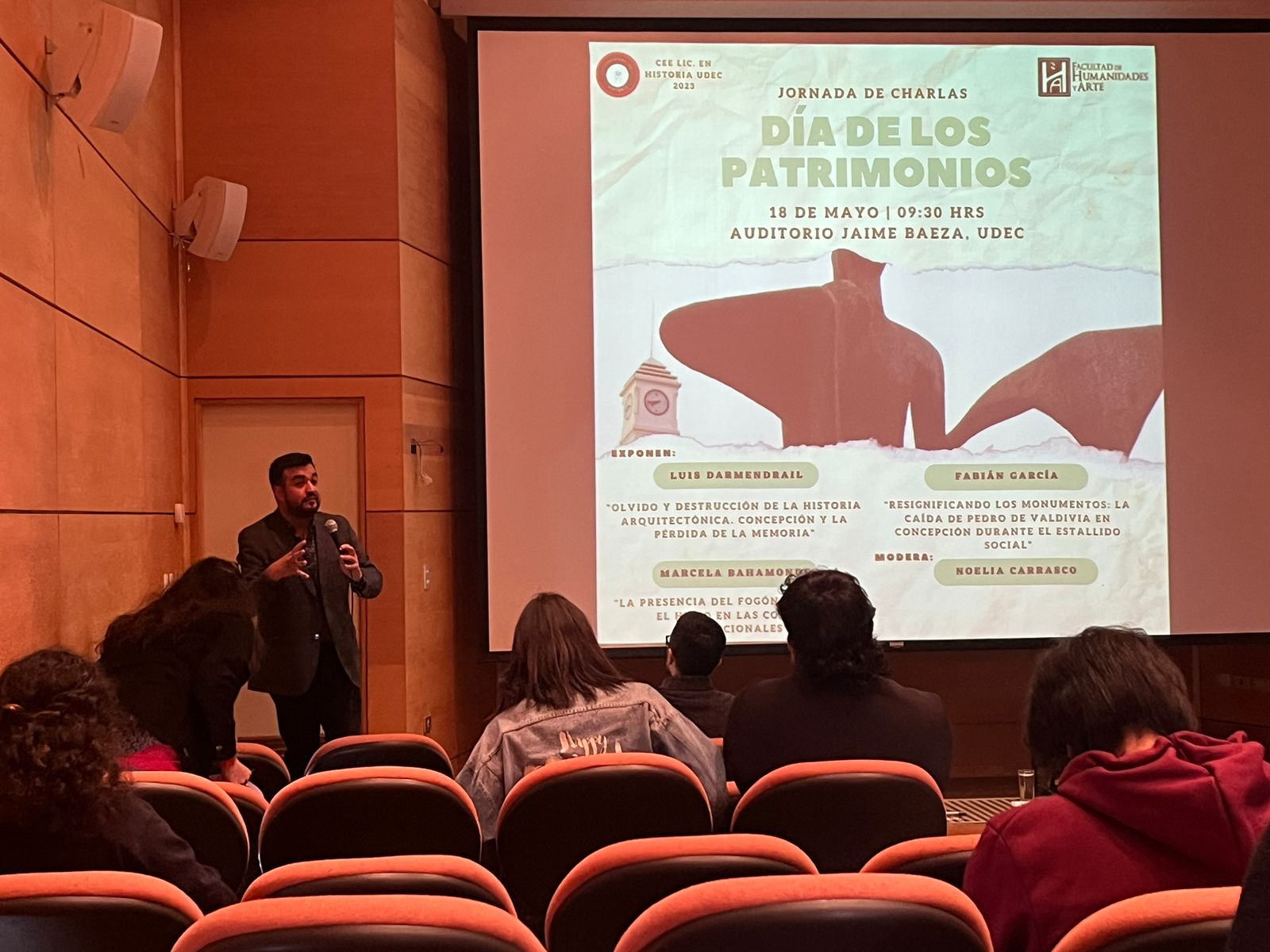 El Centro de Estudiantes de Licenciatura en Historia organizó una jornada de Charlas por el Día de los Patrimonios, la cual contó con la exposición de Luis Darmendrail, «Olvido y destrucción de la historia arquitectónica. Concepción y la pérdida de la memoria», Fabián García «Resignificando los monumentos: la caída de Pedro de Valdivia en Concepción durante el Estallido Social», Marcela Bahamonde «La presencia del fogón: el fuego y el humo en las cocinas tradicionales», instancia que contó con la moderación de la profesora Noelia Carrasco del Departamento de Historia UdeC.