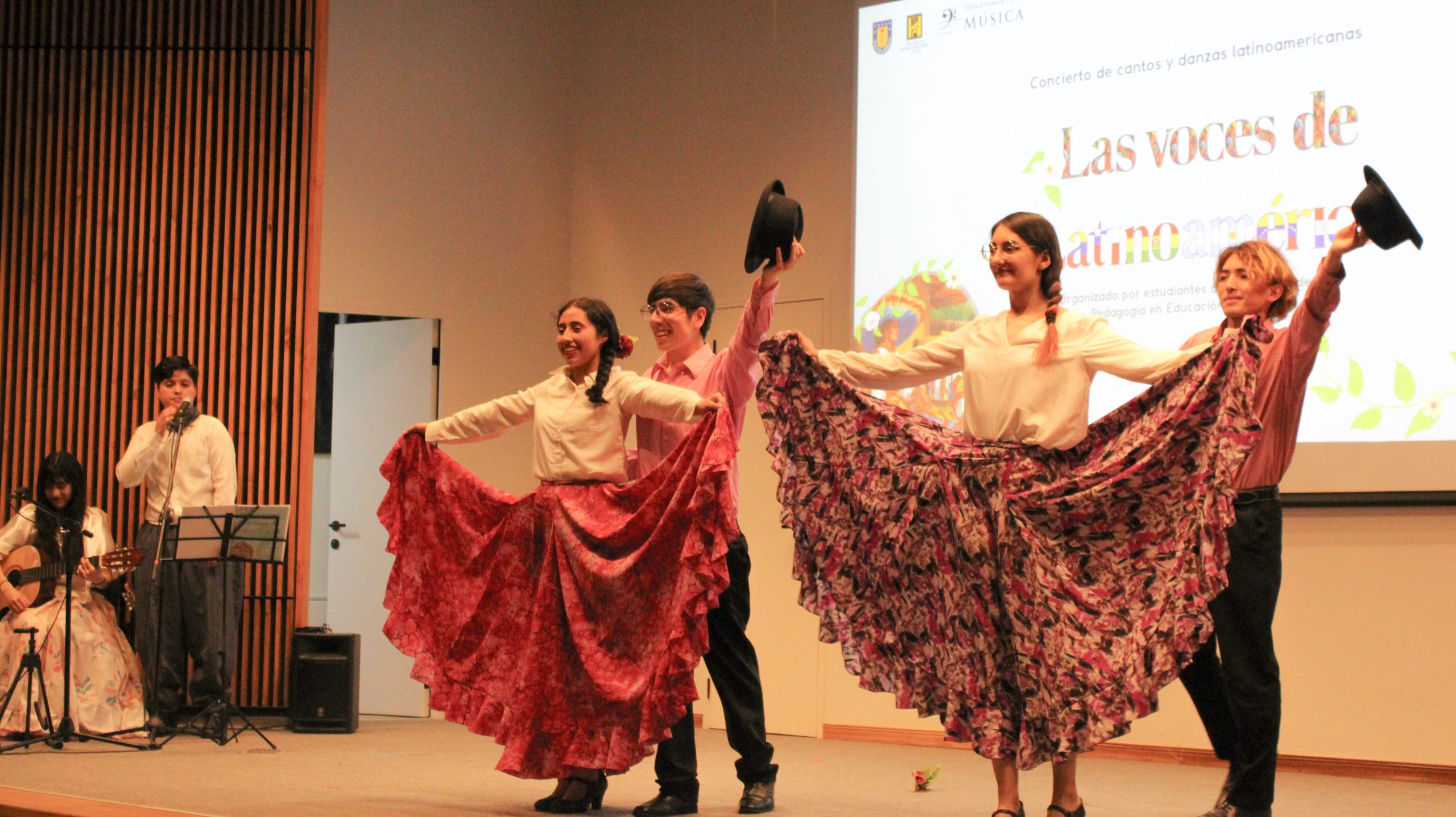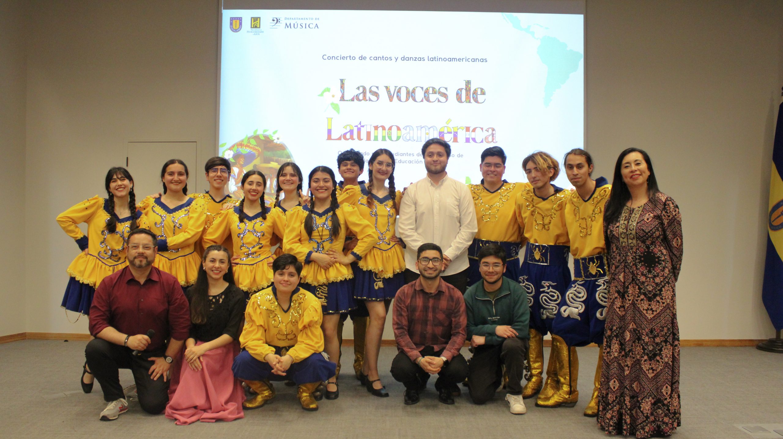 La presentación folclórica “Las Voces de Latinoamérica” entregó muestras de los conocimientos adquiridos por estudiantes de cuarto año de la carrera de Pedagogía en Educación Musical de la Universidad de Concepción, esto a través de un trabajo interdisciplinario que involucró la puesta en escena de sus habilidades interpretativas, dancísticas y audiovisuales.