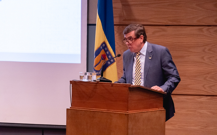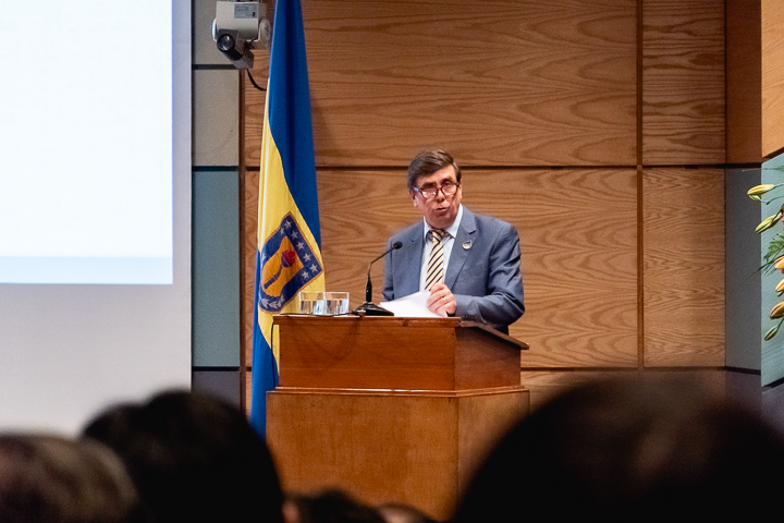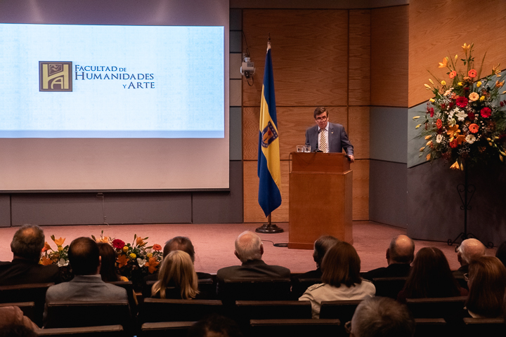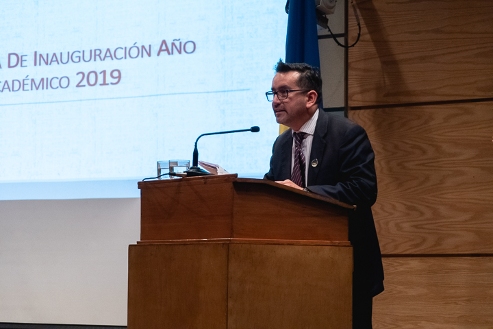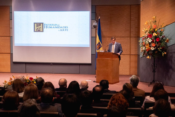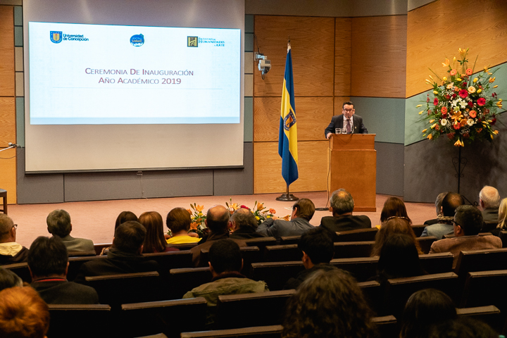 En su discurso, el decano Alejandro Bancalari Molina señaló que «como parte de la tradición y de la vida académica, nos reunimos hoy en este solemne y significativo acto, mediante el cual nuestra Facultad de Humanidades y Arte da inicio a su año académico 2019, inmerso en las celebraciones del centenario de la Universidad. Una inauguración significa instaurar y comenzar algo con buenos augurios, que representa los mejores deseos de éxito y tránsitos, inspirados en nuevos simbolismos, anhelos y desafíos para el comienzo y desarrollo de un nuevo periodo académico. En otras oportunidades nos hemos referido a los diversos logros y objetivos alcanzados por esta unidad académica, como también los grandes proyectos y desafíos que hemos debido enfrentar y asumir colectivamente. El fortalecimiento de la docencia, investigación y creación artística, el aumento de la productividad y la construcción de nuestro anhelado plan de desarrollo estratégico de Facultad (quinquenio 2019-2023), el cual presentaremos oficialmente el próximo miércoles 22 de mayo».