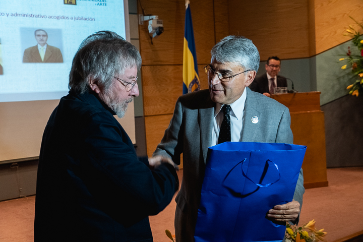 Durante la ceremonia se realizaron homenajes a profesores y administrativos que se acogieron a retiro: Lucila Saldías Rodríguez (secretaria administrativa), Edgardo Neira Morales (profesor emérito del Departamento de Artes Plásticas), Ricardo Palma (profesor del Departamento de Español) y Jorge Pasmiño Yañez (profesor del Departamento de Artes Plásticas).