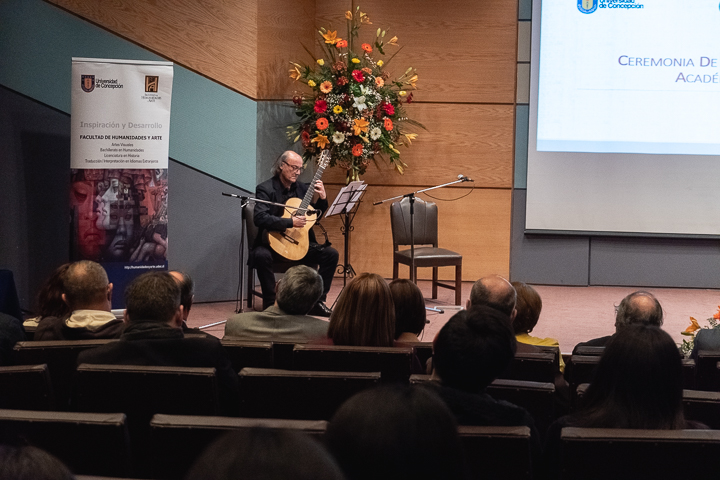 Con el objetivo de amenizar la ceremonia, se efectuó un momento musical realizado por los profesores del Departamento de Música, Mateo Palma y Alejandro Gallegos.