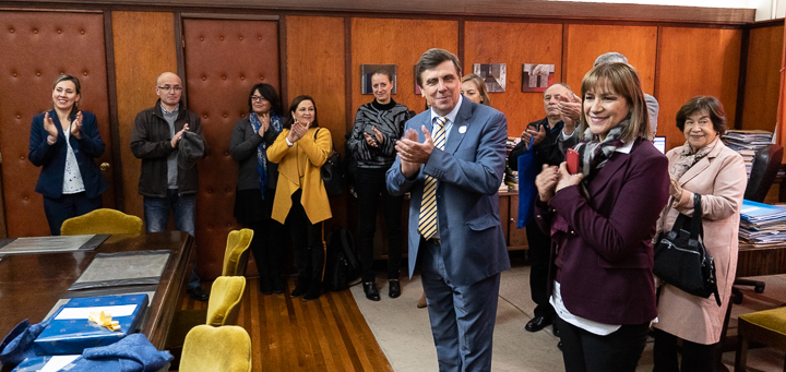 En una emotiva y solemne ceremonia, se realizó este lunes 29 de abril la Ceremonia de Inauguración Año Académico 2019 de la Facultad de Humanidades y Arte, y la cual tuvo como sello la conmemoración del centenario de la Universidad de Concepción y un merecido homenaje a tres de sus decanos fundadores: Dieter Oelker Link, Eduardo Núñez Crisosto y Patricio Oyaneder Jara.