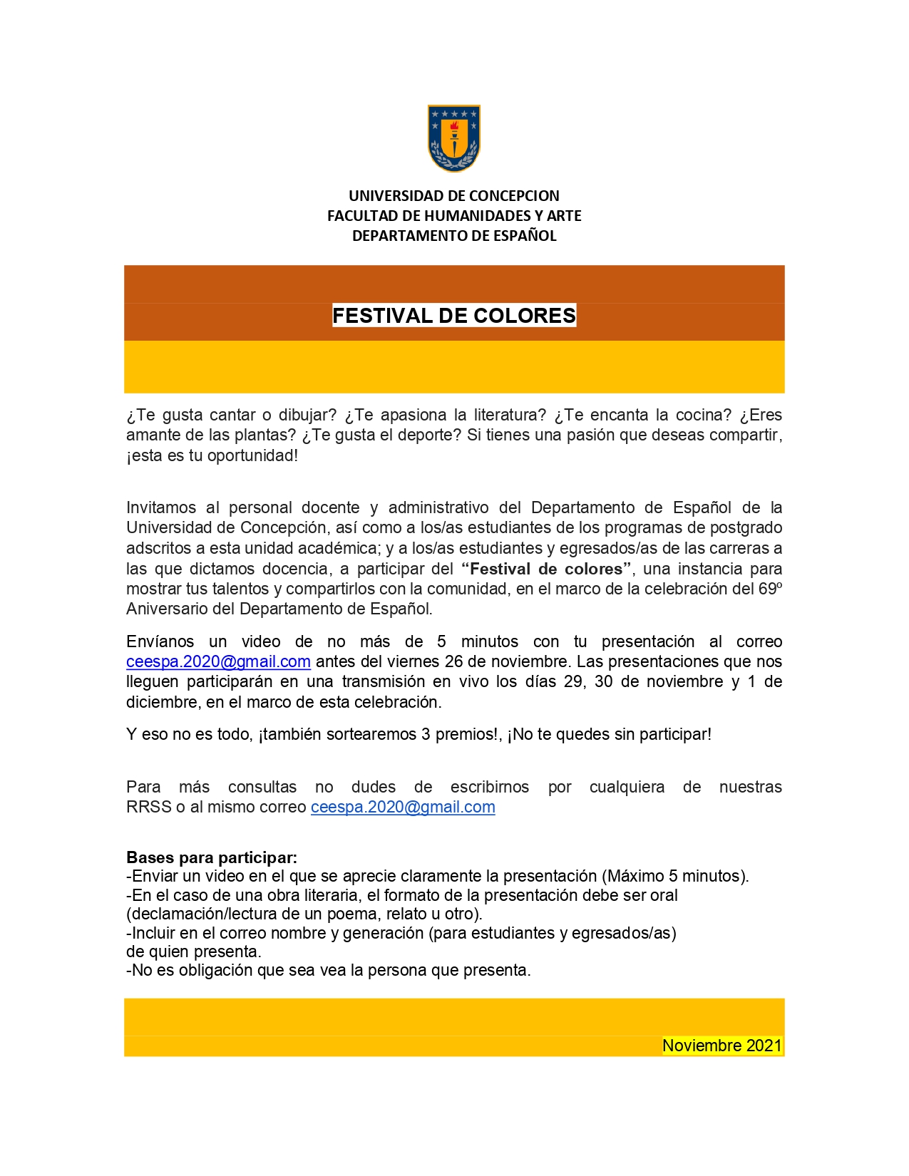 Festival de Colores, en el marco del aniversario 69 del Dpto. de Español