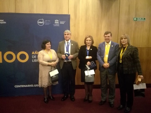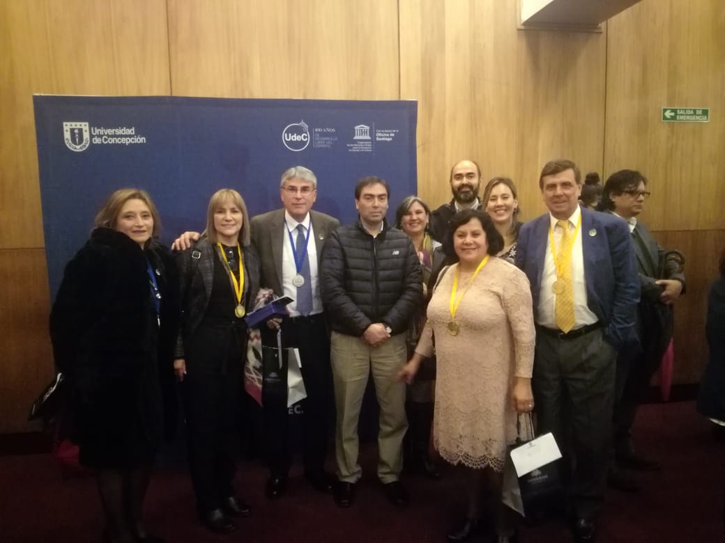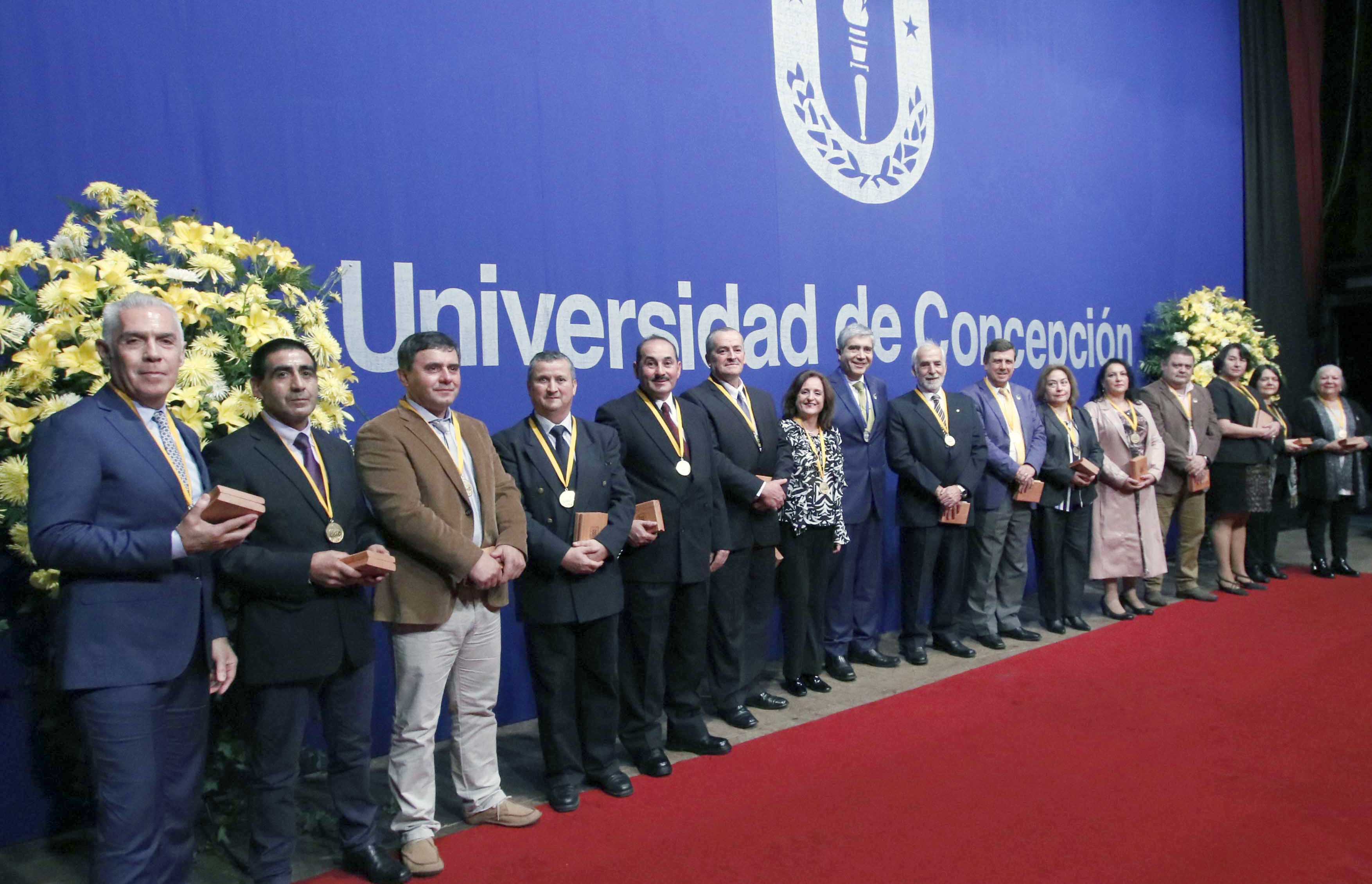Así lo consigna la medalla entregada a los homenajeados, que emula el logo de los 100 años de la UdeC con el lema “Por el desarrollo libre del espíritu” en su cara posterior.