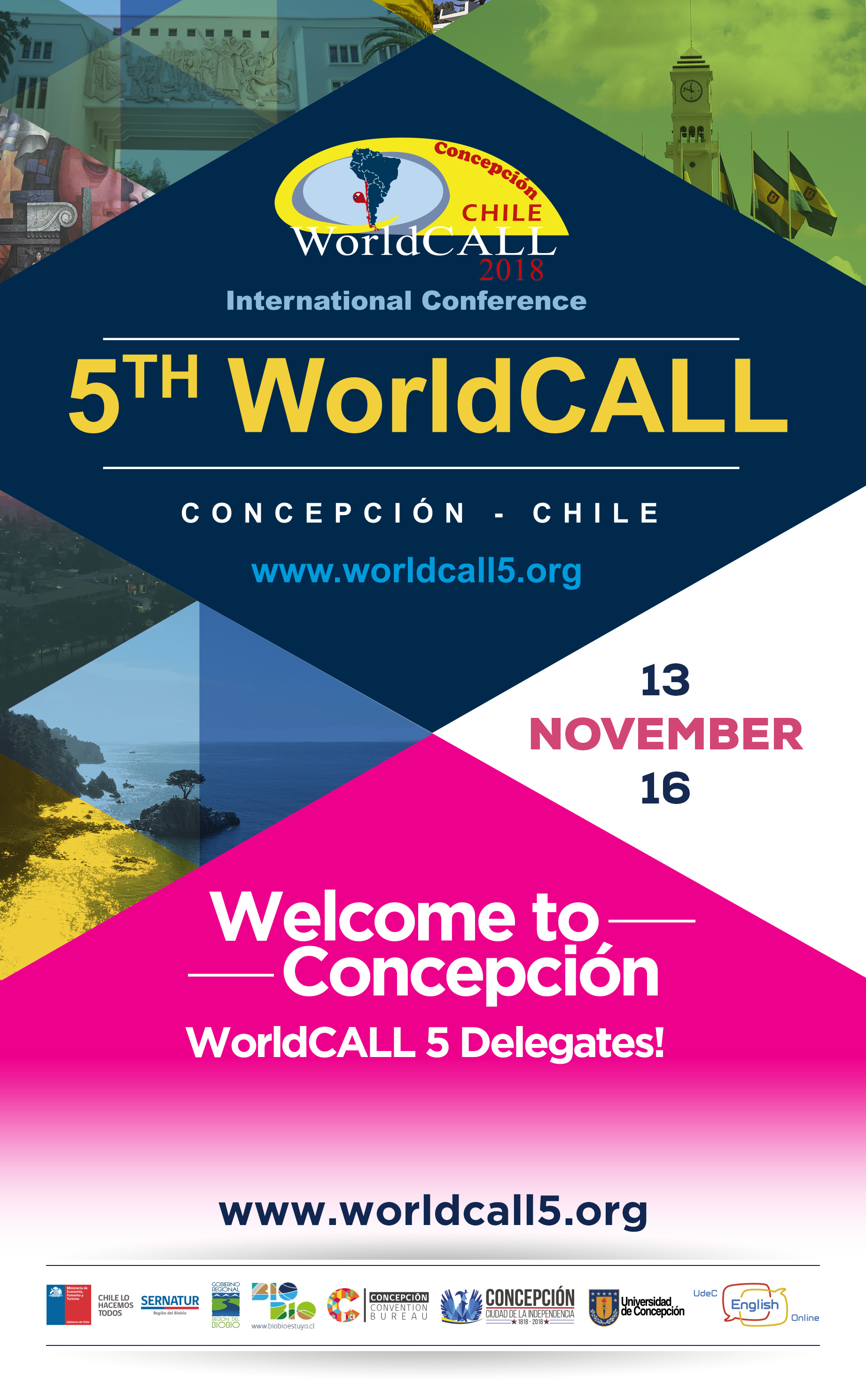 Se informa de la realización del Congreso Mundial Quinquenal WorldCALL 2018, del 13 al 16 de noviembre, un evento único a realizarse por primera vez en Latino América, en la Universidad de Concepción. Por tal motivo se invita a toda la comunidad docente a asistir. WorldCALL, ya que será una gran oportunidad de aprendizaje de las tecnologías, metodologías y aplicaciones de punta que se están usando en la enseñanza aprendizaje de inglés e idiomas con uso de tecnología a nivel mundial, así como de vinculación internacional con la comunidad de profesores de idiomas provenientes de 37 países, investigadores, editores de los máximos journals en CALL (Computer Assisted Language Learning), y la comunidad de importantes académicos exponentes mundiales.