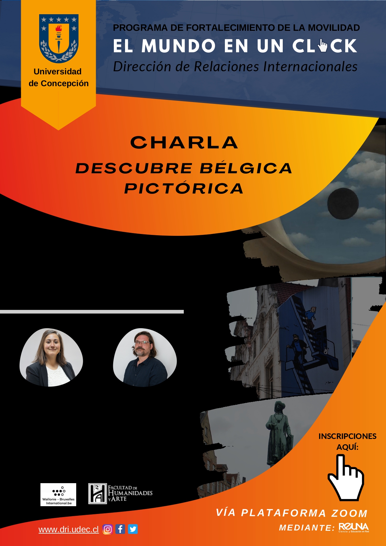 El Departamento de Idiomas Extranjeros invita a la comunidad académica y estudiantil a participar de la charla «Descubre Bélgica Pictórica», la cual se realizará -mediante transmisión online- este martes 27 de octubre a las 17.00 horas, actividad que forma parte del Programa «El Mundo en un Click», de la Dirección de Relaciones Internacionales, en conjunto con la Delegación general Valonia-Bruselas y la Facultad de Humanidades y Artes.