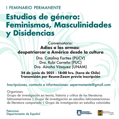 El equipo organizador del I Feminario permanente en Estudios de Género: Feminismos, Masculinidades y Disidencias los invita cordialmente a la tercera jornada de diálogo, en esta ocasión tendremos el conversatorio dedicado a las Masculinidades latinoamericanas que desarrollarán nuestras invitadas Dra. Catalina Forttes (PUCV), Dra. Rubí Carreño (PUC) y Dra. Ainoha Vásquez (UNAM) a efectuarse el día jueves 24 de junio, a las 18:00h.