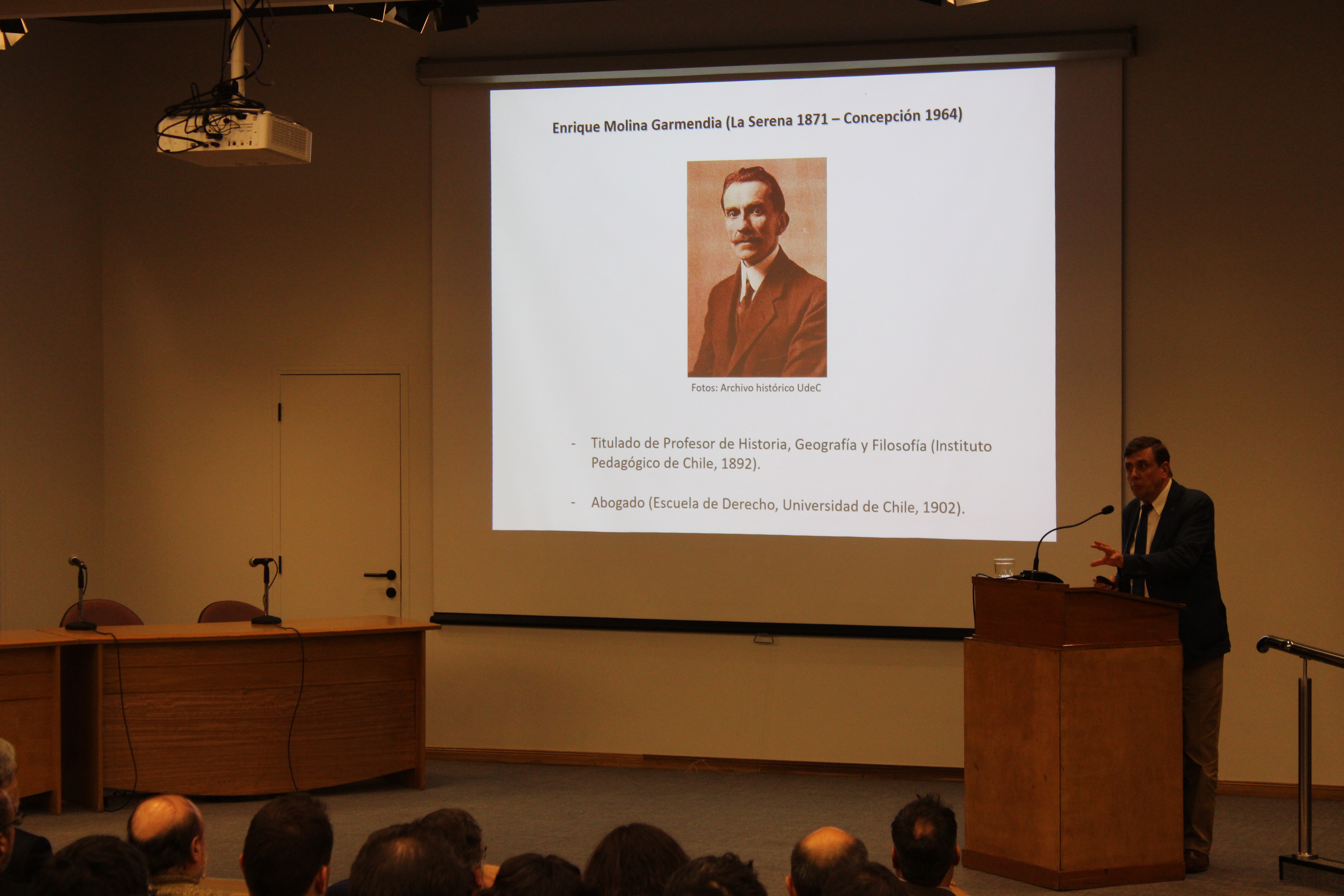 En tanto, el decano de la Facultad de Humanidades y Arte, Dr, Alejandro Bancalari Molina, además de valorar el exitoso trabajo realizado por la Comisión Organizadora del Departamento de Historia que trabajó en la preparación de estas XXIV Jornadas de Historia de Chile, realizó una completa exposición biográfica de dos grandes académicos de la UdeC: el primer rector y fundador de la universidad, Enrique Molina Garmendia, y del Dr. Leonardo Mazzei de Grazia. Éste último quien dedicó más de cuatro décadas de su vida a la enseñanza, la investigación y la extensión en el campo de la Historia y la Geografía, dejó una huella imborrable en la comunidad académica y en la Región del Biobío.