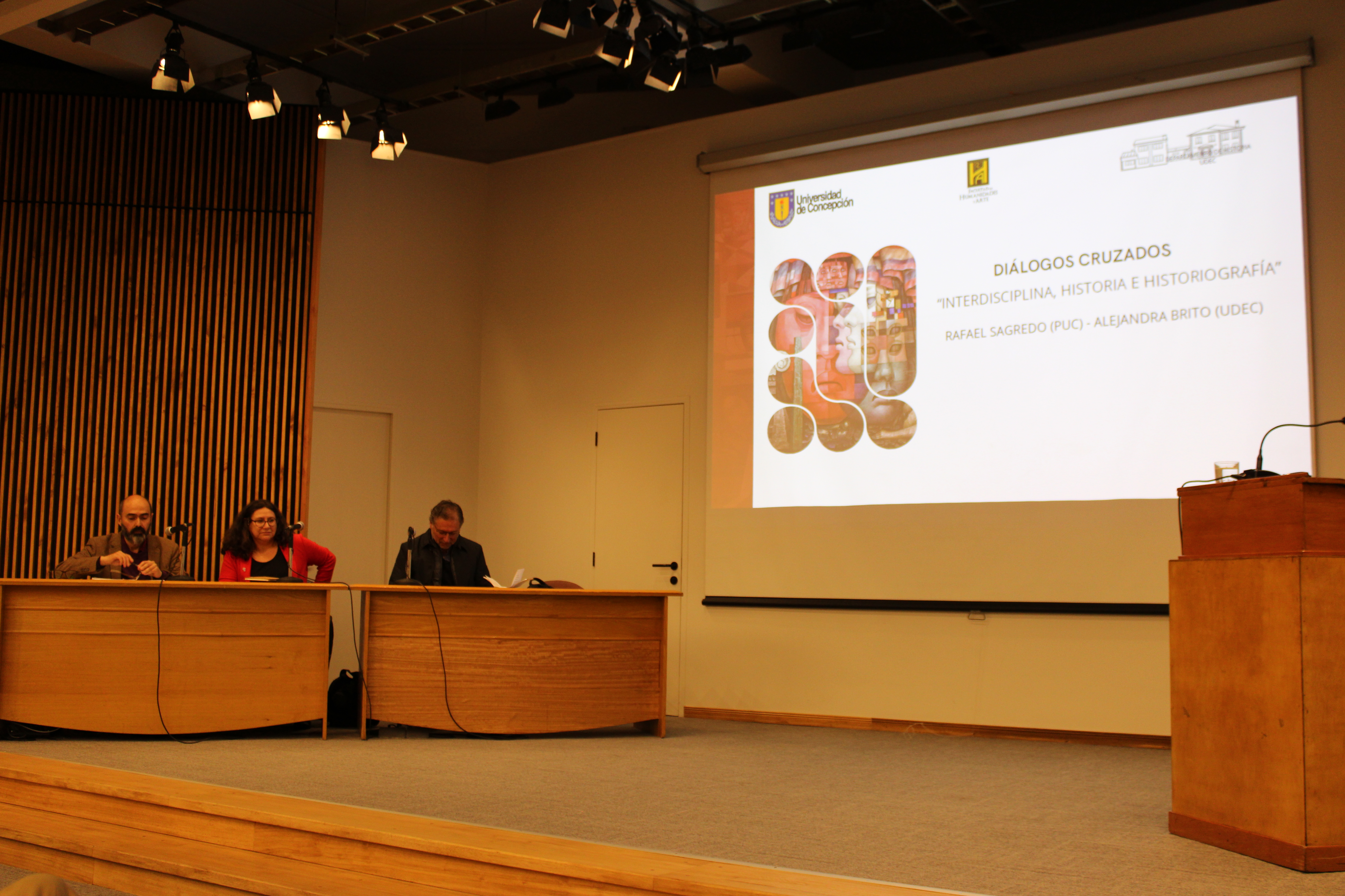 La actividad concluyó con el panel denominado “Diálogos cruzados” el que abordó el tema “Interdisciplina, historia e historiografía”, en el cual participó el académico de la PUC y Premio Nacional de Historia 2022, Dr. Rafael Sagredo Baeza y la Dra. Alejandra Brito Peña, académica UdeC e integrante de la Red de Historiadoras Feministas, contando además con la participación del Dr. Fernando Venegas Espinoza, académico e investigador del Departamento de Historia UdeC quien ofició de moderador.
