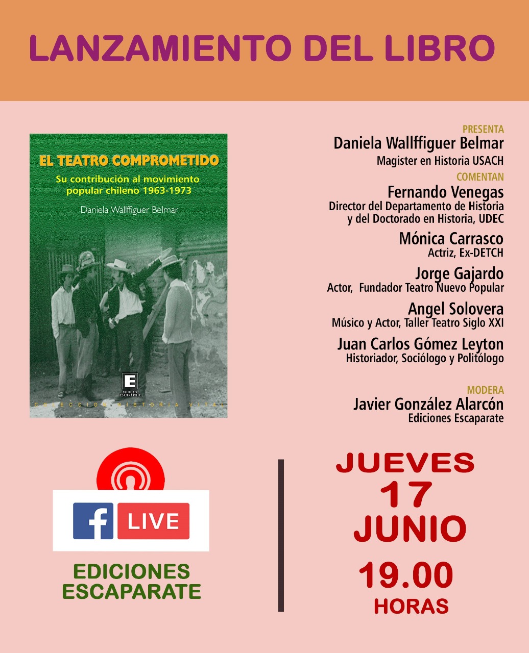 Este jueves 17 de junio a las 19.00 horas se realizará la presentación del libro titulado «El teatro comprometido. Su contribución al movimiento popular chileno 1963-1973», escrito por Daniela Wallffiguer Belmar, alumna del programa de Doctorado en Historia, de la Universidad de Concepción.