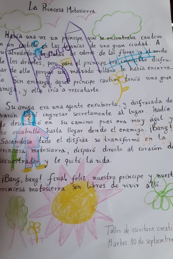 Como un espacio de fuente inagotable de comprensión y libertad, y que identifiquen y expresen sus sentimientos y emociones mediante la lectura dramatizada, escritura creativa y la música, el proyecto consto en una serie de talleres bimensuales de literatura: escritura y lectura de obras clásicas breves, y música: guitarra y metalófono, intervenciones que fueron abordadas desde una perspectiva interdisciplinaria de la literatura y la música, a través de una metodología innovadora, que sostiene el arte como herramienta de autoconocimiento, expresión y sanación, y que, tiene como objetivo desarrollar habilidades socioafectivas en niñas de seis y diecisiete años que debieron dejar su hogar tras haber sufrido vulneración de sus derechos, por lo que, se encuentran en las residencias colaboradoras del SENAME, ubicadas en las comunas de Chiguayante, Concepción y Talcahuano. Uno de los libros analizados en los talleres de literatura fue “El Principito” de Antoine de Saint- Exupéry, el fragmento “Duele, duele un montón. Pero va a pasar, y cuando sane, más fuerte vas a brillar, más alto vas a volar, más libre vas a soñar. Y vas a entender, que algunas historias terminan, para que otras mejores puedan empezar”, este permitió abarcar el tema de conocer y expresar las emociones de las niñas con la esperanza de avanzar hacia su sanación y felicidad.
