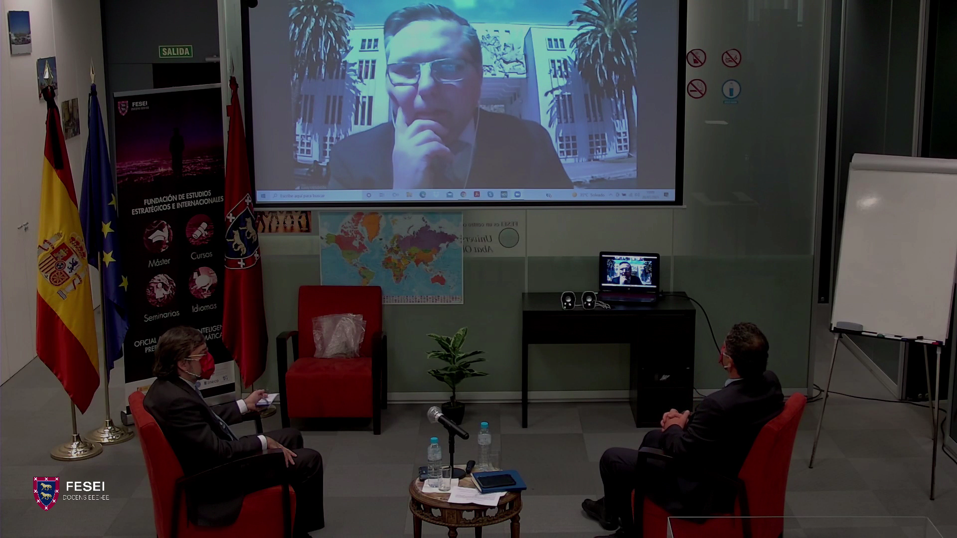 El día martes 20, los asistentes a la Escuela Internacional de Verano abordaron temas de Inteligencia Prospectiva Estratégica, iniciando con un ejemplo de un área de interés vital para España como es Sahel-Magreb. Finalmente, la jornada se completó con la intervención del Dr. Juan Eduardo Mendoza, profesor de la Facultad de Humanidades y Arte de la Universidad de Concepción, quien, junto al Profesor de Prospectiva, Dr. Mario Puig de la ANEPE y un grupo de alumnos del Diplomado de Análisis de Inteligencia Político-Estratégico, analizaron la situación de Chile a partir del 18 de octubre del 2019 y los posibles escenarios futuros contemplados en el proceso constituyente. “En la oportunidad – comenta el Profesor Mendoza – se explicó un trabajo practico de Inteligencia Prospectiva que realizado en clases por los alumnos y que llamo mucho la atención por la metodología empleada”. Por otra parte, el académico y coordinador del Diplomado que dicta en Formación Permanente UdeC, señaló que este tipo de actividades son muy positivas para internacionalizar el programa que ya cuenta con dos alumnos mexicanos y que para la próxima versión ya hemos recibido interesados de países de América Latina y Europa.